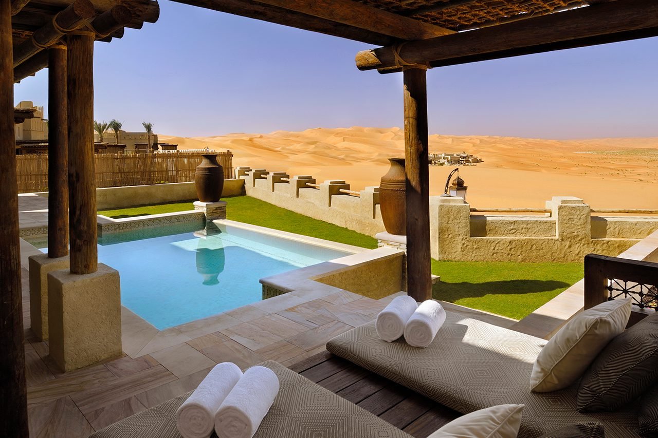 The ten villas are self-contained with a private pool, outdoor rainforest shower, sunbathing cabana, dining terrace and lawn area. Additionally, the main Pavilion offers a private restaurant, gym, lounge, spa and a terrace overlooking the desert sanctuary. Guests staying at the villas can choose to arrive in a private limousine or by helicopter.