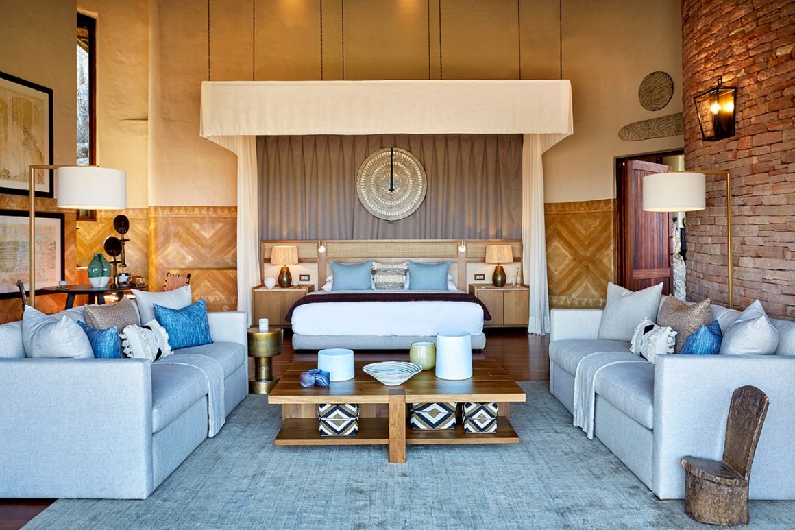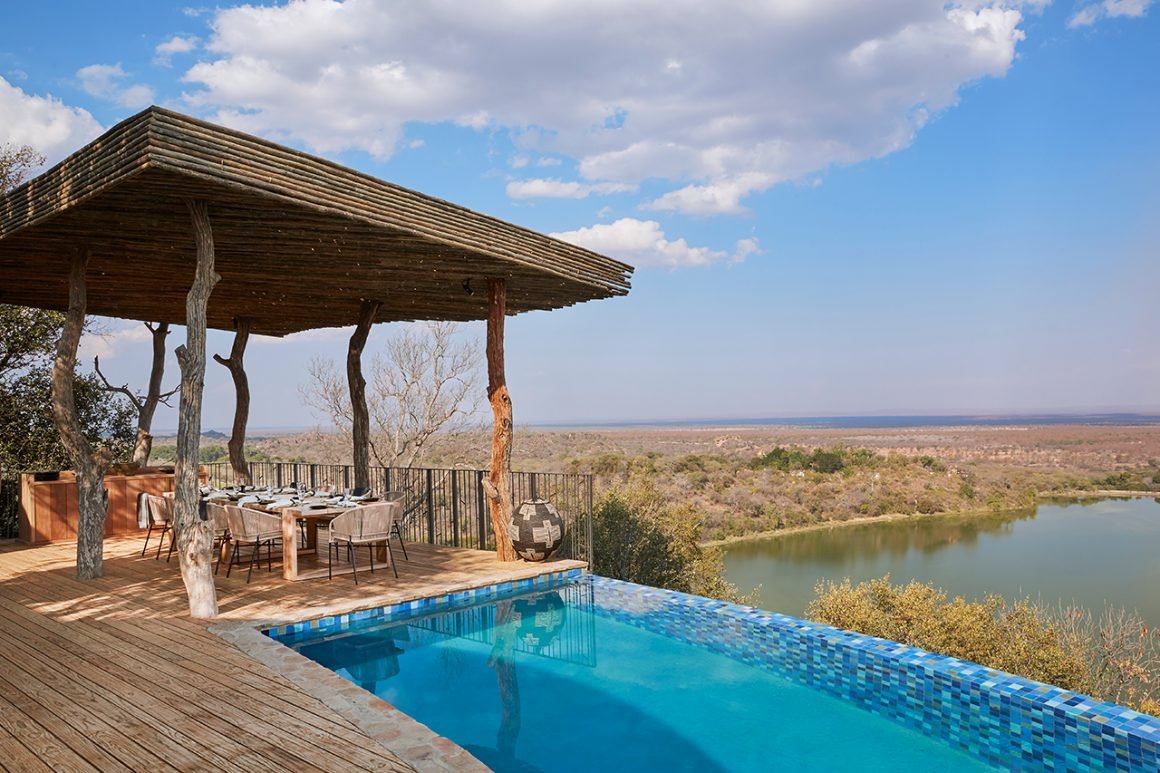 Offering panoramic views of the Malilangwe Dam below and the pristine surround landscape of Singita’s private reserve, this exclusive-use five-bedroom villa takes its design and architectural cues from nature and local Shangaan culture.