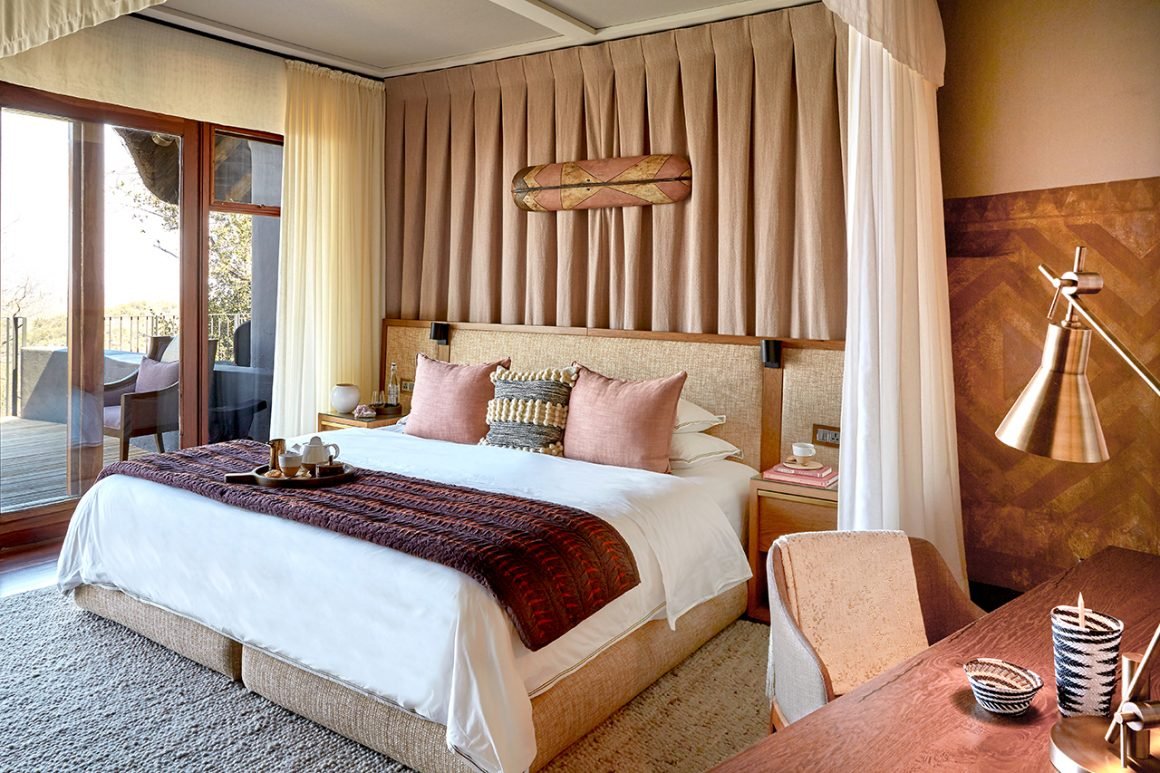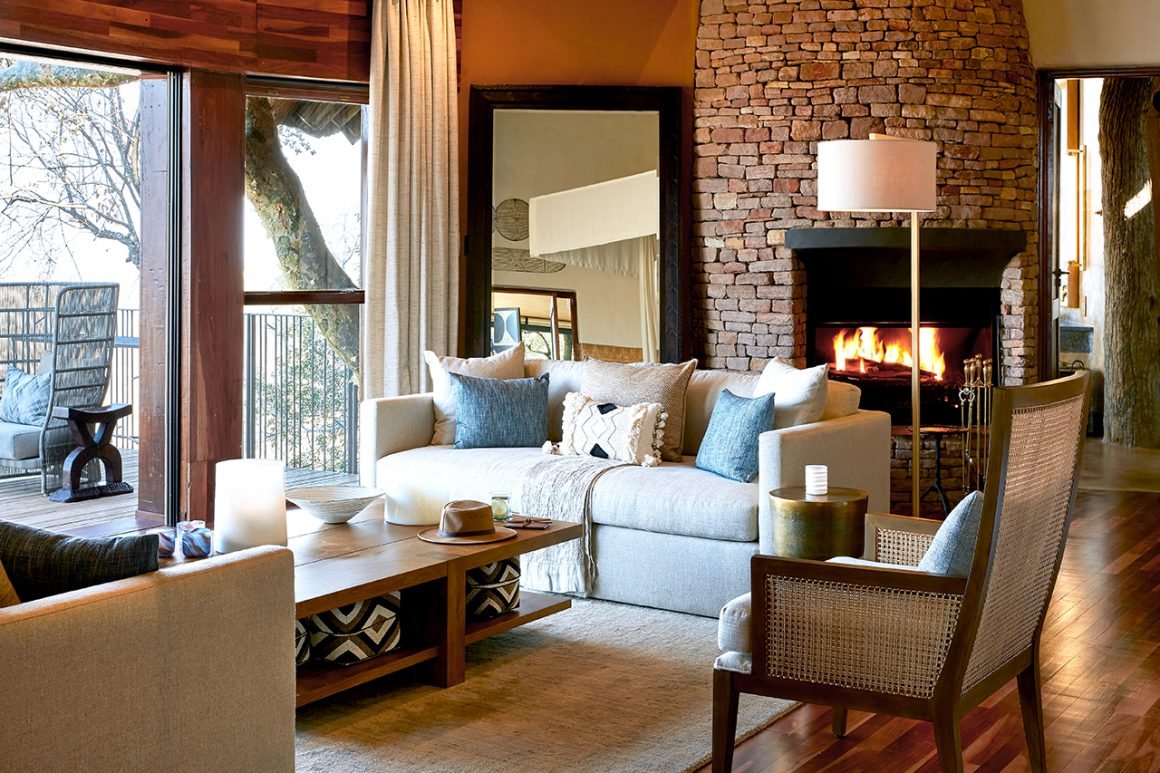 All elements of the property have been curated by leading South African design team Cécile & Boyd in collaboration with GAPP Architects. The style emulates the essence of the original villa, which drew inspiration from the rich tribal heritage of Ancient Zimbabwe. An emphasis was placed on creating fluid transitions between in and outdoor areas enhancing the entire guest experience. The décor reflects the location with rich textures, geometric patterns, tile inlays, hammered brass and woven leather in tones of deep olive, tan, black and white creating a striking backdrop for contemporary African artefacts, in keeping with the nearby Singita Pamushana Lodge.
