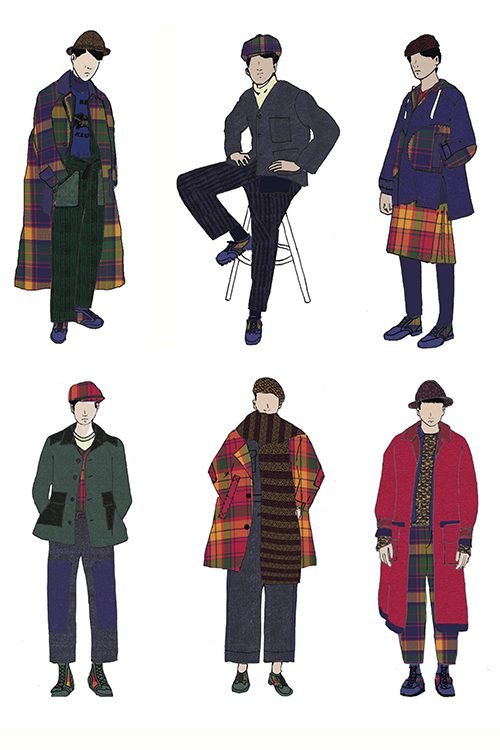 Daniel W. Fletcher’s collection is inspired by traditional British clothing, and focused on technologically advanced iterations of wool, offering a new take on the historical British fabric. The starting point for Edward Crutchley’s collection began by looking at textiles within the material culture and the role they play in the expression of identity. Nicholas Daley’s collection SLYGO takes its name from his father’s DJ alias and draws inspiration from his parents’ club night known as The Reggae Klub, which ran from 1978-1982, in and around Scotland. CMMN SWDN’s signature use of unexpected pairings is at play across all elements of the collection. Well-loved garments are recreated in Merino wool through knowingly awkward proportions and are paired against technical base-layer seamless sheer knits.