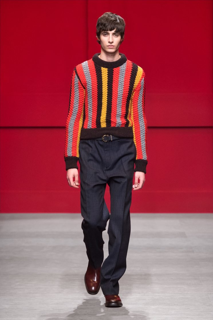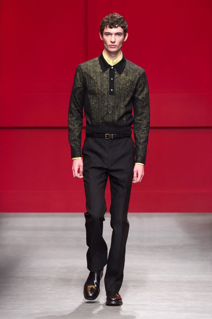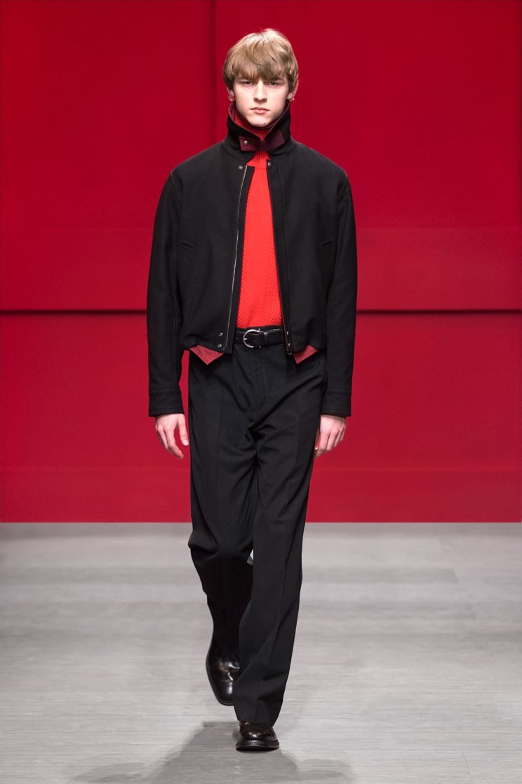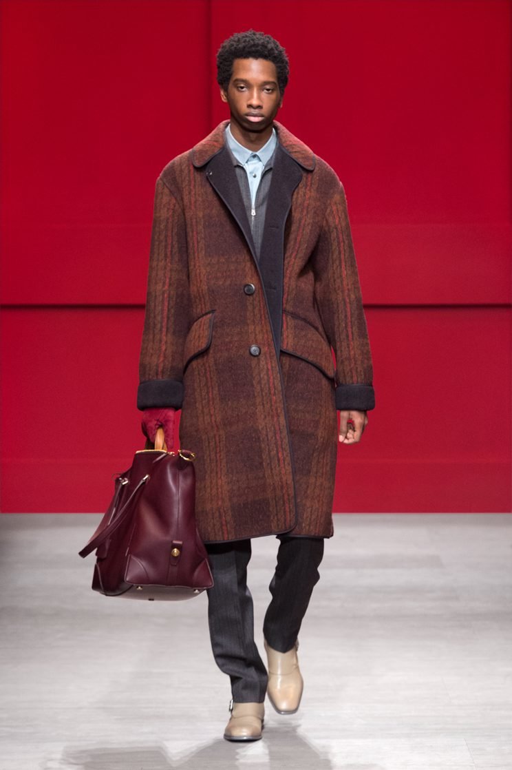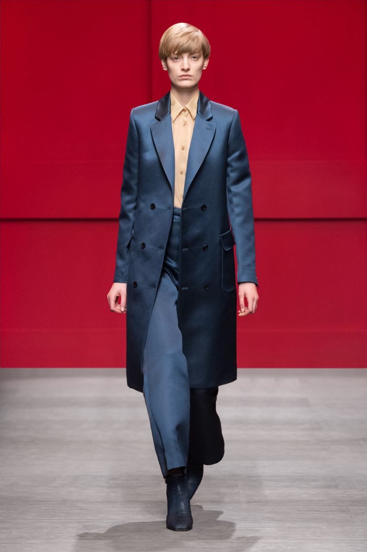 In the collection “a new construct of dressing emerges: familiar forms are stripped back, loosened and elongated with ease and elevated functionality. Traditional silhouettes are expertly dissolved for a contemporary take on formal codes. Materials are unrivalled: from plush leathers to Italian wool fabrics, to heavy silk twill and soft cottons. Broad strokes of colour were the starting point; merlot reds and mustard yellows mix expertly with parakeet green and deep Vatican blue between hints of nude and blush” reads a statement from Ferragamo.