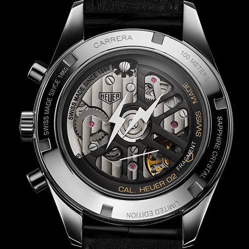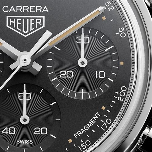 Hiroshi began the project with “a deep dive into the product archives of the manufacture” and “learned about the history of the TAG Heuer Carrera,” according to the brand. Hiroshi then chose the original Carrera model from 1963 to transform into a Fragment-inspired timepiece.