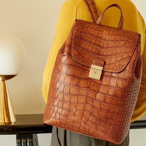 For the Fall-Winter 2019 season, a unique vintage leather preserved since 1983 served as the base for the creation of three models limited to only ten pieces: the Riserva Folio, briefcase and luggage, all in deep burgundy with black highlights. Under ?Exotic Creations’ this year, they have alligator presented as a slim briefcase in navy blue, a backpack in cognac, a billfold wallet and simple card case, both in navy blue.