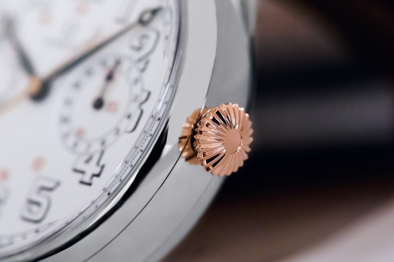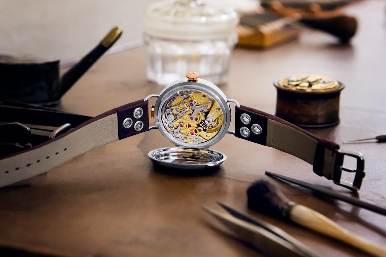 Modern materials have also been included, such as 18K white gold for the case, and 18K Sedna gold for the crown and pusher. The classic design also features a hatched caseback, which can be flipped open to reveal the refurbished movement positioned behind sapphire-crystal.