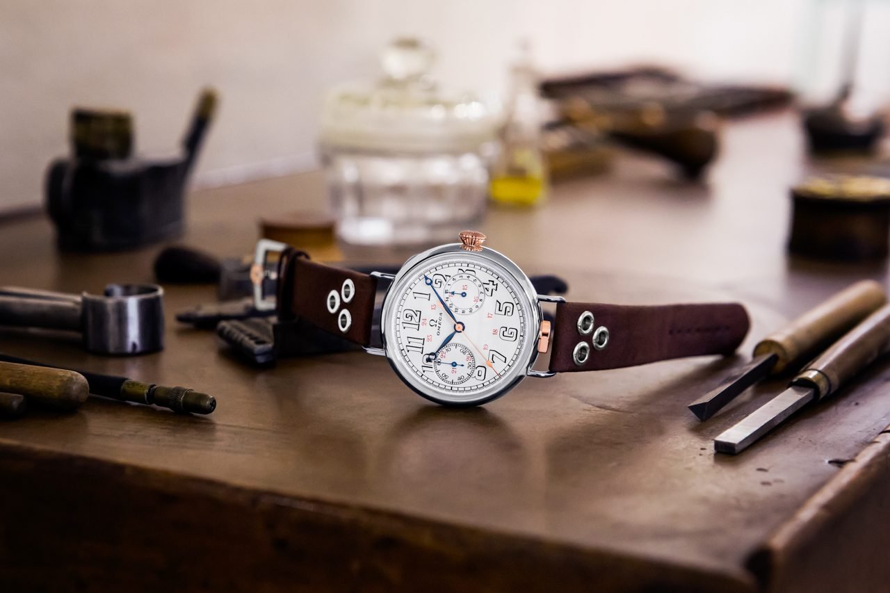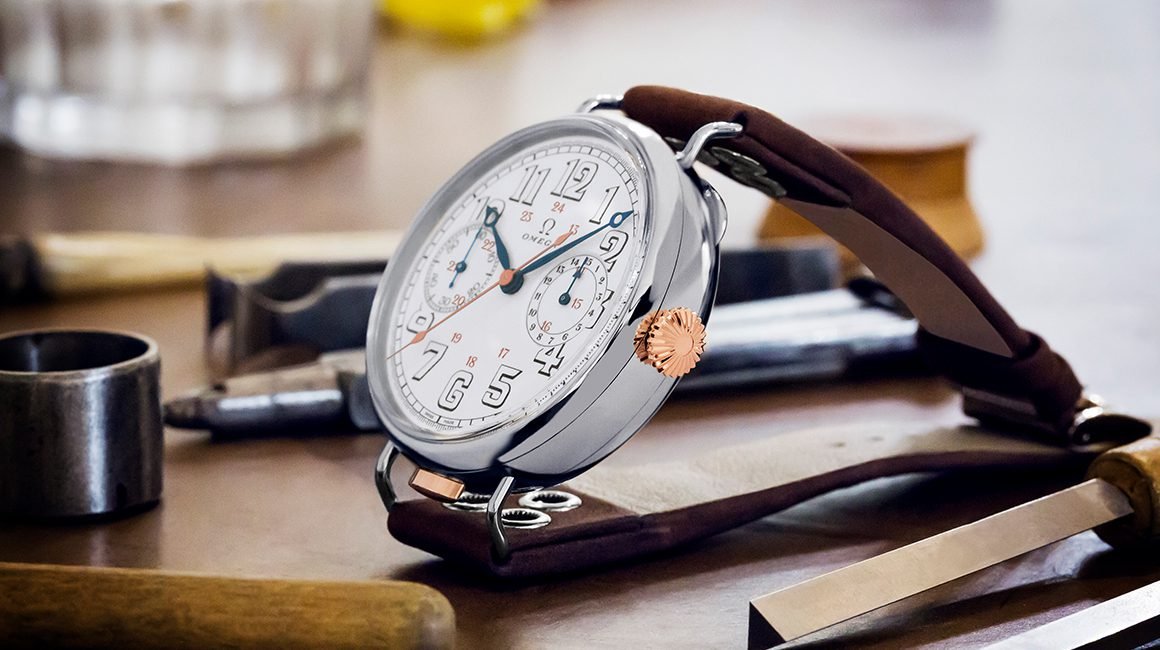 For the outside design of the 47.5 mm timepieces, Omega has followed the look of an Omega wrist-chronograph from 1913, with classic details such as the riveted leather strap and the white enamel dial with blued “Empire” hands and hollow Arabic numerals. This design was a favourite amongst military personnel during the First World War. Aviators, especially, were drawn to the easy-to-read dial design and 15-minute counters which were ideal for the most challenging missions. Numerous models were delivered to the Royal Flying Corps and used by some of the most famous wartime pilots and soldiers in history.
